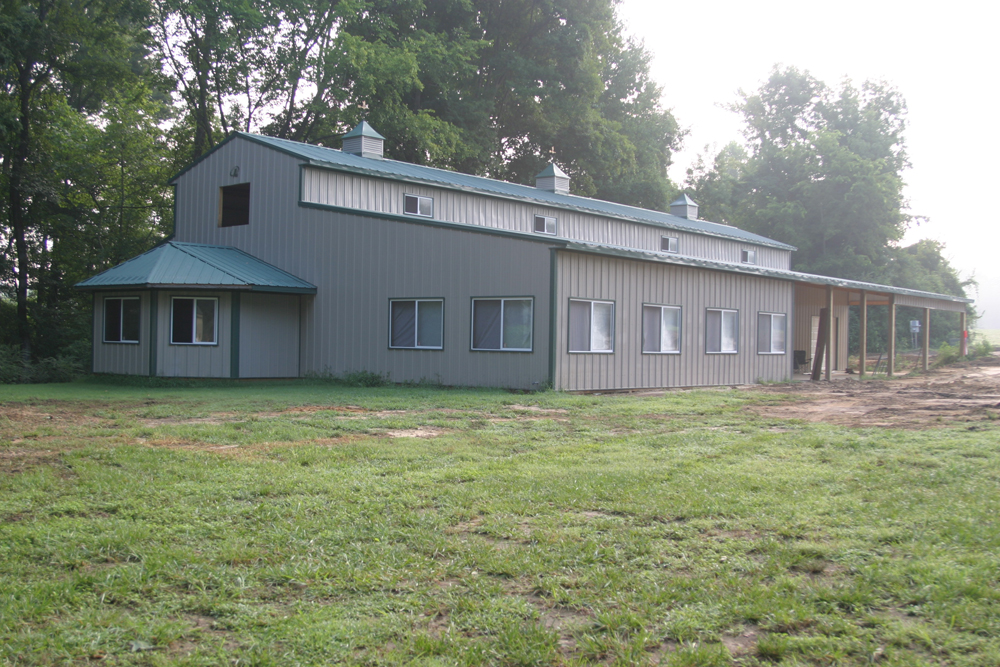 Construction: agricultural type pole shelter with insulated concrete floor.