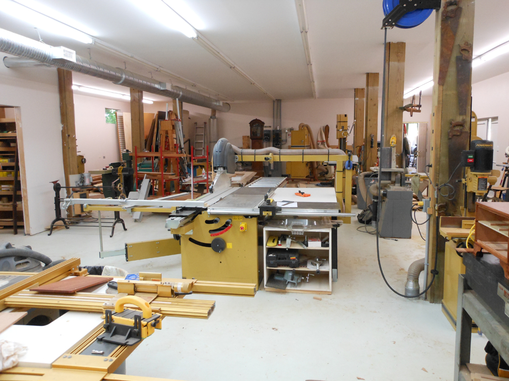 Woodworking area is 60x40 with a 20x10 bench area bump out overlooking a 600 acre lake.