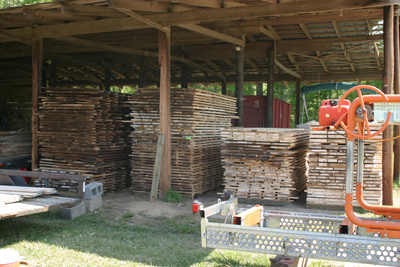 Hurricane Isabel took down hundreds of trees on the farm, some of which were over a hundred years old. We did our best to salvage what we could and air dried it.