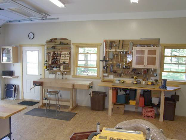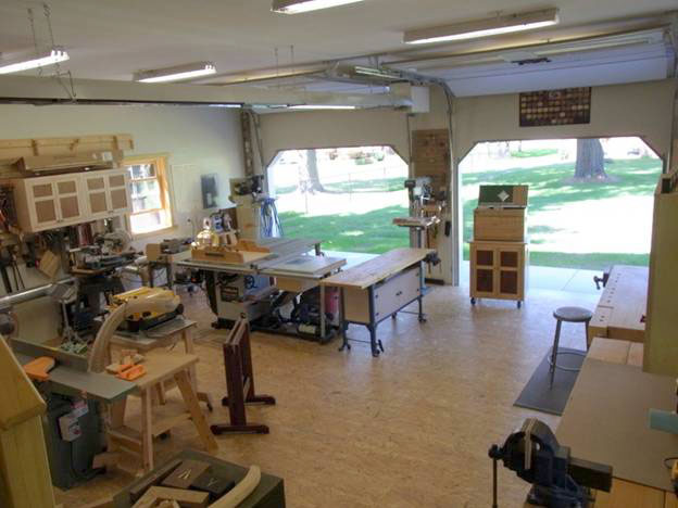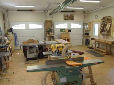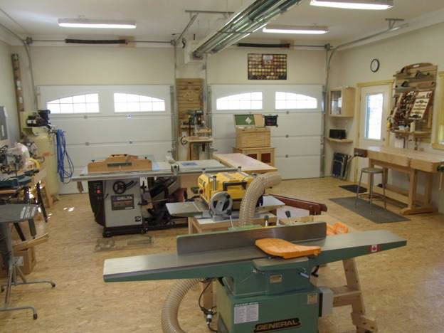 I was fortunate to be able to retire last year at an early age. And, with great support and encouragement from my wife, had this dream building put up this summer in the backyard of our 1-acre lot. The shop is 24' x 30' with a 10' ceiling and generous full height storage on the unfinished 2nd floor. The construction included 2x6 walls, good double-pane windows, and the best insulated doors I could find. I put DRIcore on the floor, finished with urethane with an anti-slip additive. All together with an overhead radiant tube heater it should keep me comfortable thru a Michigan Winter. The shop allows me to move out of our basement removing the noise and dust (even with good dust collection and air filters you can never capture all of it) from the house. I am looking forward to many years of furniture builds in this dream shop.