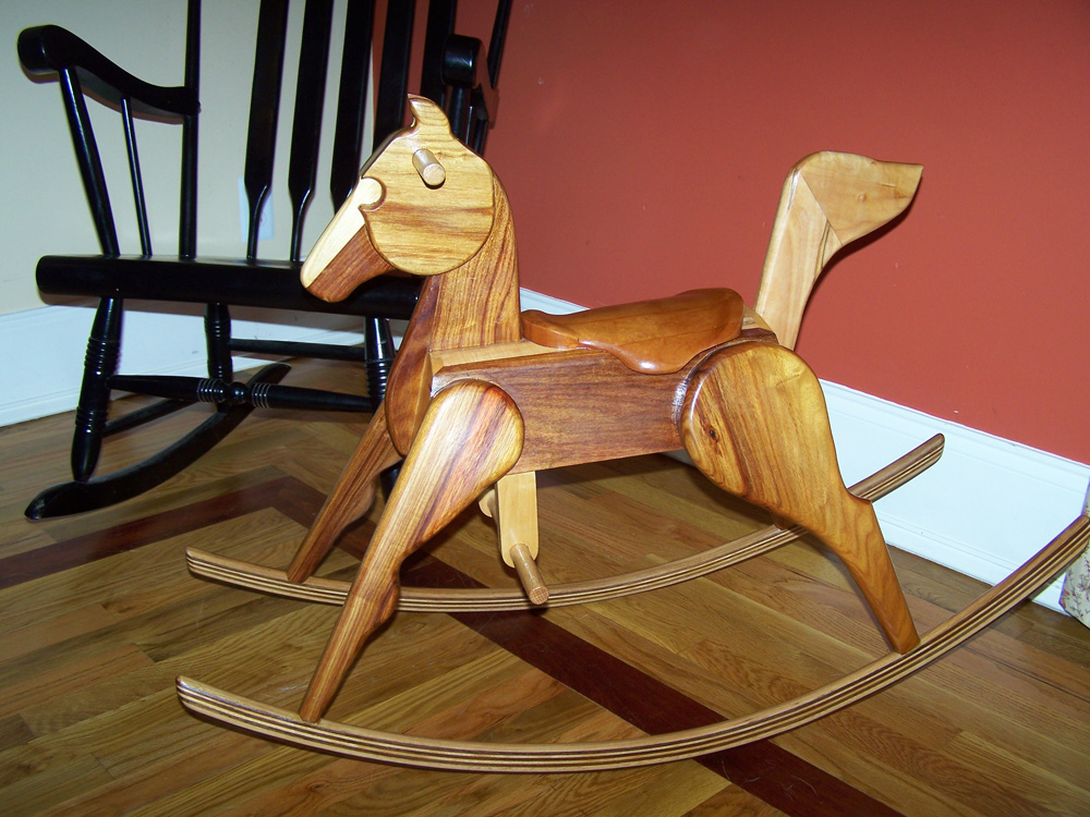 These are some little rocking horses that I build on occasion. I have sold a couple on Etsy, and donated a few. These are sized for a child of about 10-30 months.
