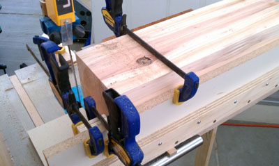 I jointed and planed it square and down to a precise 3x3, and then glued it together.
