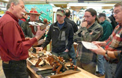 Rasp maker extraordinaire Michel Auriou flew in from France to demonstrate how he uses a hammer, punch and anvil to turn a slab of metal into an exquisite cutting tool. Hand tool experts Curtis Turner and Ted Dishner came with huge displays of Lie-Nielsen planes, saws and chisels, putting them in the hands of everyone who wanted to feel the solid heft and superb cutting action of a Lie-Nielsen tool, while offering on-the-spot coaching whenever needed. CLICK HERE to see our photo gallery of the Hand Tool Event and Chris Schwarz class: