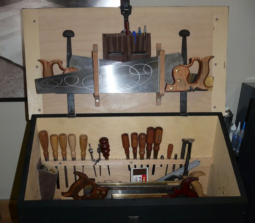 One of the most successful events ever held at Highland Woodworking took place Feb. 1 and 2, 2013. The Saturday portion in particular was an extremely high energy affair. A tremendous crowd turned out to meet Christopher Schwarz, the well-known woodworking author, former magazine editor and Lost Art Press publisher. Chris brought with him to show one of his signature tool chests, this one sized down to (barely) fit through the door of his red sports car. Inside were a full complement of hand tools ready to attack most any woodworking challenge. Chris also stayed around on Sunday to teach a hands-on class wherein a dozen woodworkers each built 3 inlaid wooden layout tools.