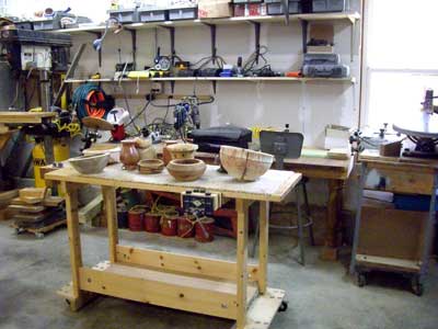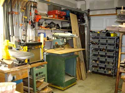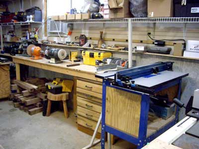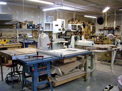 Our shop is a 24 x 40 foot building, located in Eureka, MO. It's wired for 110 and 220. It has heating and air conditioning but is NOT self cleaning. I have worked with wood for over 50 years and have most of the tools I have acquired over that time. Because my wife and I are both wood workers we have duplication of several machines, And there is always the "need" for bigger and better. We have had the shop in this building for just over a year and are still working on placement and origination. It is a real joy to have a building totally dedicated as a shop.
