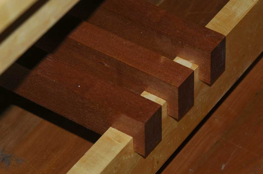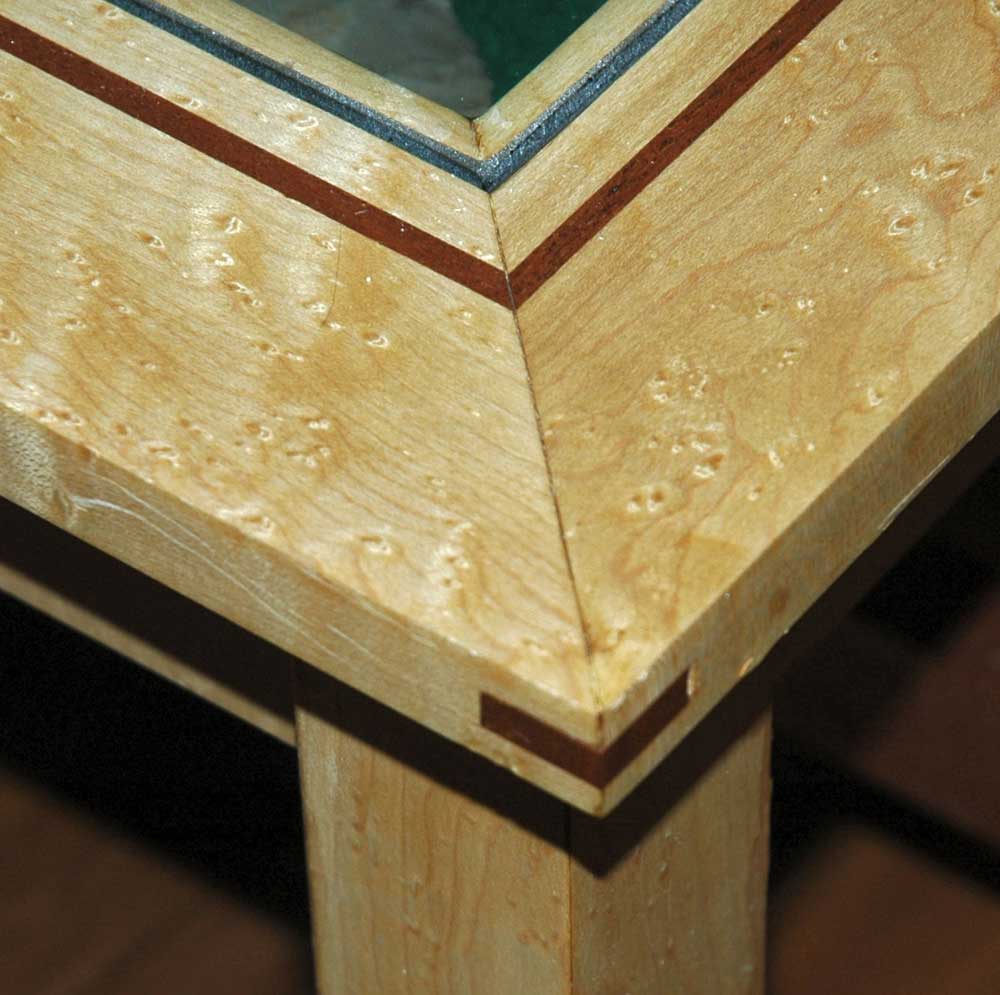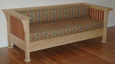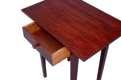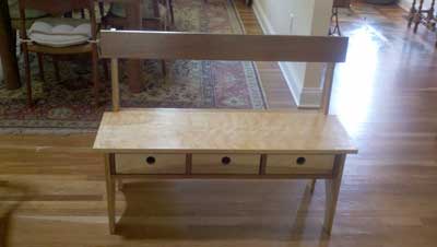 I draw attention to the coffee table because it would display artifacts from the owner's past. I decided to use a lighter wood than the standard quarter-sawn oak found in Mission furniture. Also having a preference of using two contrasting woods in my furniture-making, I chose to make the table out of birds-eye maple and black walnut for accents.