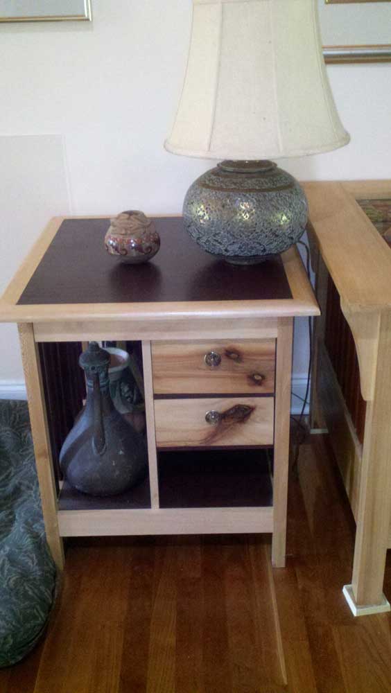 I like to make mission and shaker style furniture with a twist. I usually use woods other than the traditional oaks for my projects and will usually use a primary hardwood and a secondary contrasting wood for highlights. For example maple with walnut. This approach has become a signature for my furniture making. In addition to furniture I also make home decor items and turn pens.
