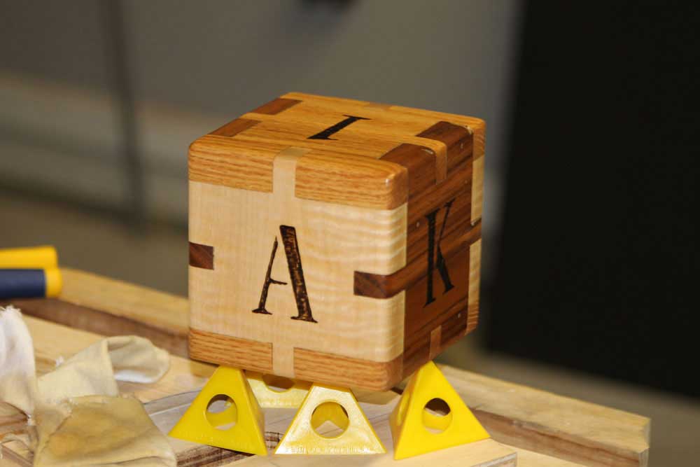 I have attached a few pictures of some of my other work. The one that I will say a little about is the ABC cube. I made it for my youngest daughter last year for Christmas. The box is made of Maple, Oak, and Chestnut. It has her initials on three of the sides and date of birth on the other three, I also added bb's before glue up so that it acts as a rattle.