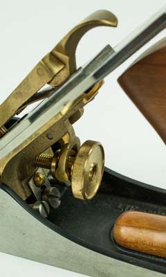 Some newer planes—including block planes and other bevel-up planes—are built with adjustable mouths. Usually the mouth is loosened by turning a lever at the base of the toe, then sliding the mouth assembly forward or backward to obtain the desired opening.