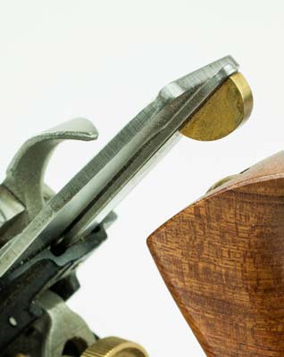 Now we come to the business end of the adjustments, where the metal meets the wood. On most planes, you turn the depth adjustment wheel clockwise to deepen the cut and counterclockwise to retract it. However, there are exceptions. I recently came upon an old Crusader where the depth adjuster was turned in the opposite direction, so check your plane to see which rule applies.