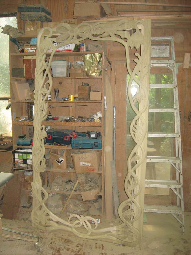 The mirror frame in the picture I sent you was for a client who wanted me to do a custom carving to fit the mirror she had already installed.