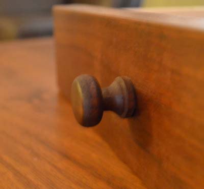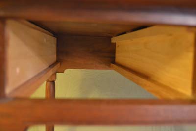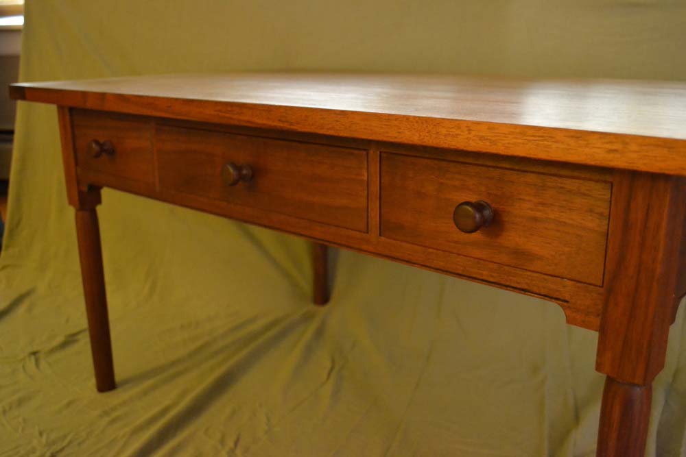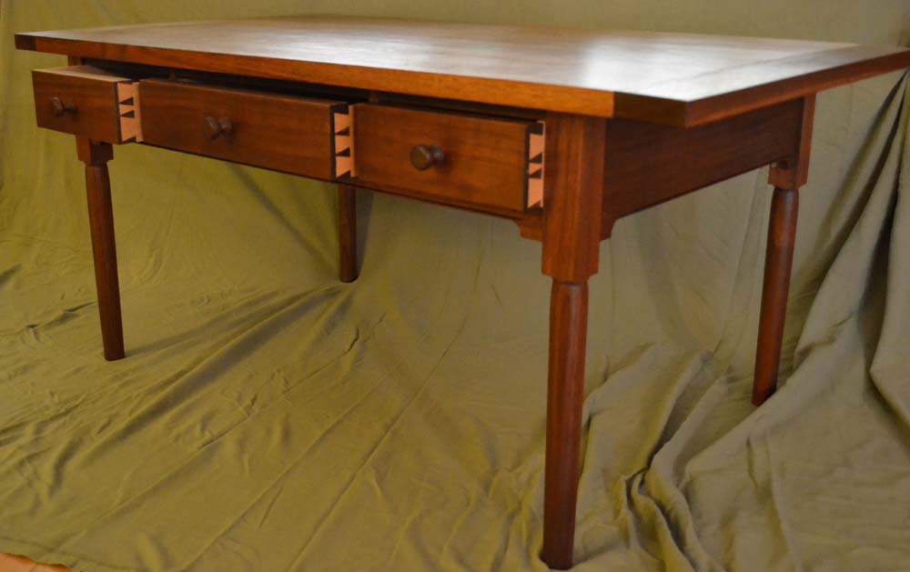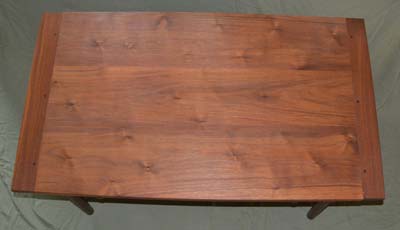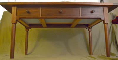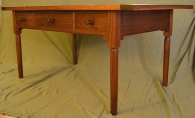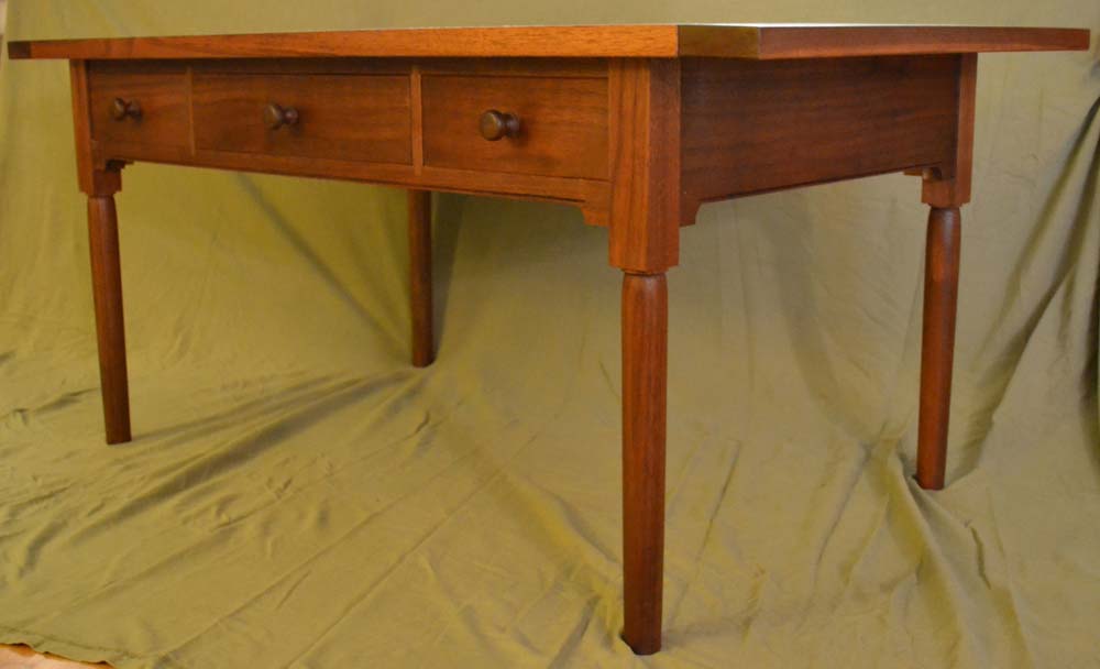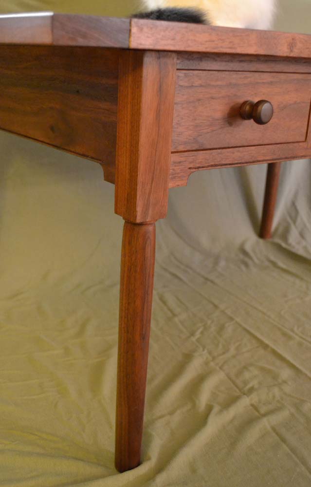 The coffee table below is the first project with legs that I turned. I used Moser's book to get some of the details along with some articles written by Becksvoort. I also turned the knobs. The drawer fronts are and the horizontal pieces (top dovetailed in, bottom mortised) are all from the same board.