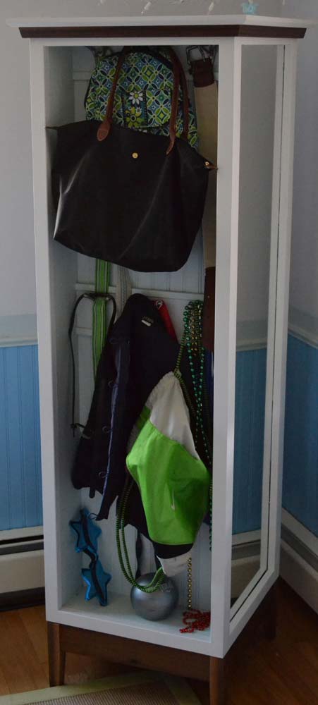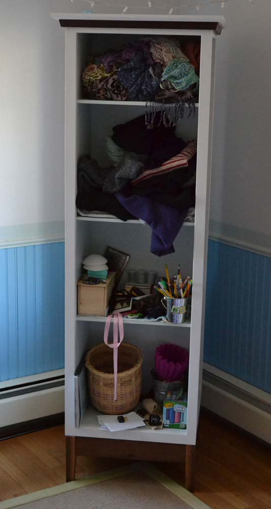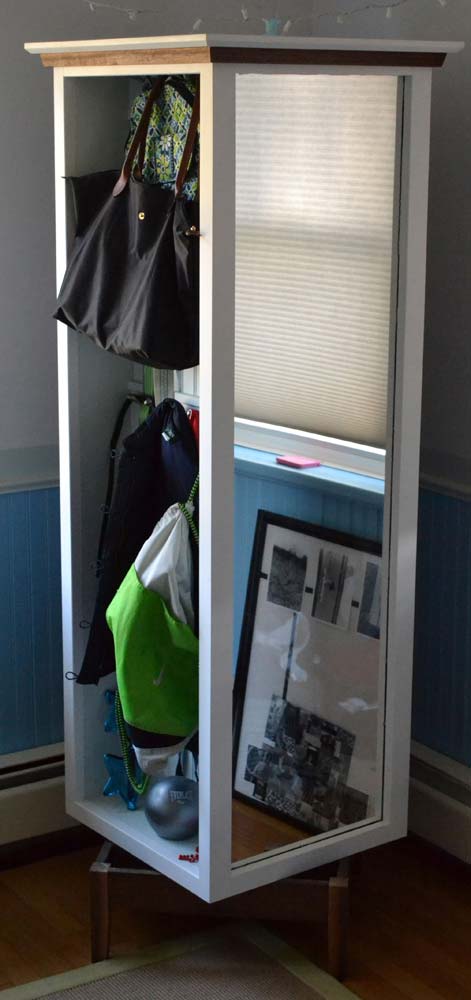 I've also included the walnut-based spinning cabinet that I made for my daughter, Olivia. One side is a mirror, another chalk board, another shelving and finally beadboard with hooks.