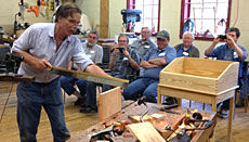 Roy Underhill was his usual entertaining self during his class at our store in Atlanta on April 28, 2013. Above he demonstrates his custom "one stroke" Lie-Nielsen dovetail saw. See more photos from the class, and a video of the saw in action: