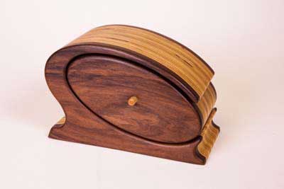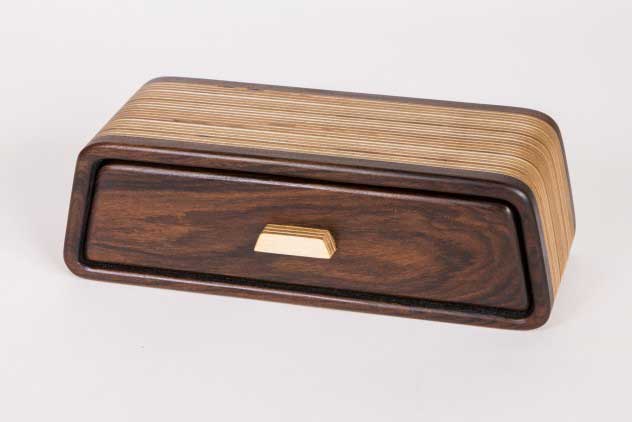 "Tennessee" Bandsaw box made from rosewood and plywood. Finished with boiled linseed oil and wipe-on poly.