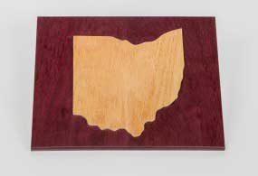 Ohio wall hanging. Red oak and purple heart. Finished with wipe-on poly.