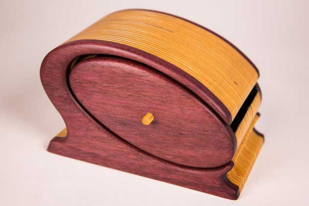 "Ohio" Bandsaw box made from Purple heart and plywood. Finished with boiled linseed oil and wipe-on poly.