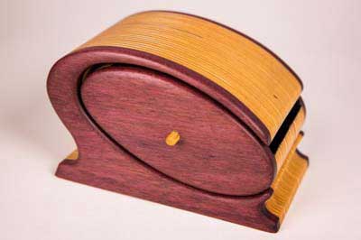 "Chicago" Bandsaw box made out of purple heart and plywood. Finished with boiled linseed oil and wax.