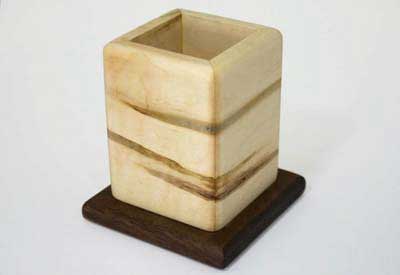 Pencil holder made from spalted maple and walnut. Finished with pure tung oil and wax.