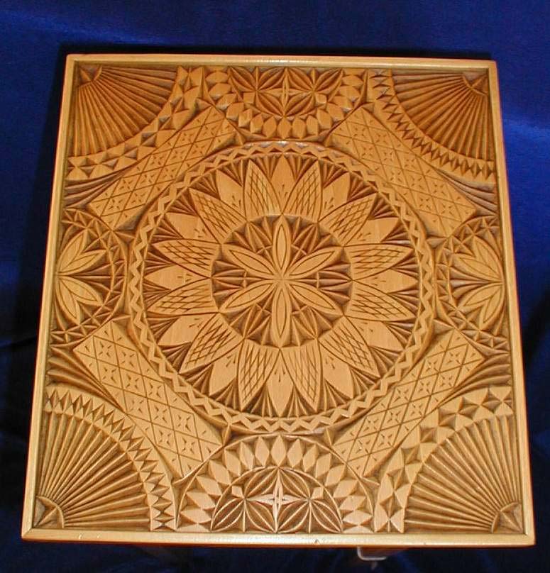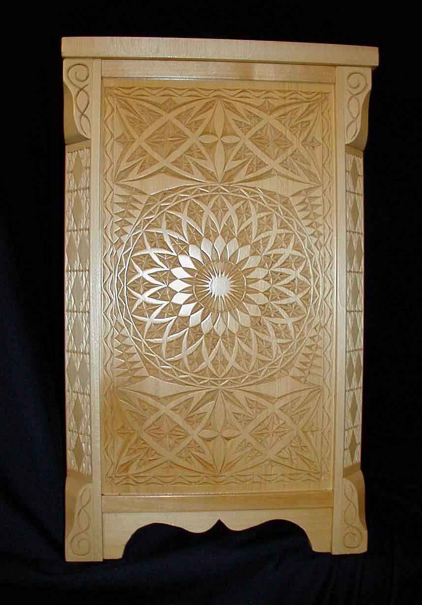 at Highland a few times a year. Since it is an intro class, we weren't sure how much Mickey gets to show off the impressive advanced chip carving work he regularly produces, so we thought we would show it off for him. Take a look below at some of his pieces and sign up for Mickey's next class at Highland if any of these pieces inspire you to want to try your hand at chip carving!