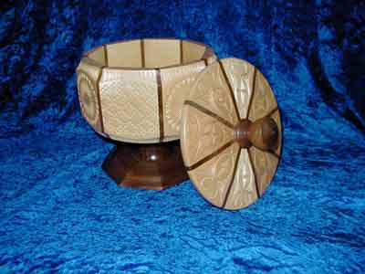 Chip carved bowl made of basswood with walnut dividers
