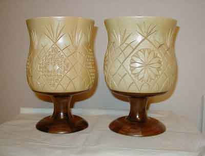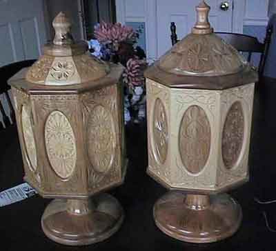 Nearly mirror image urns made of butternut and basswood