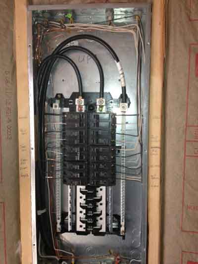 I decided to do the rough electrical wiring myself. I've had enough experience myself to run circuits. The only thing I was unsure about was how to wire the outside meter box to the inside circuit breaker panel. So I did the rough wiring, nailing on boxes and pulling wires - this is pretty straightforward work - and then called an electrician.