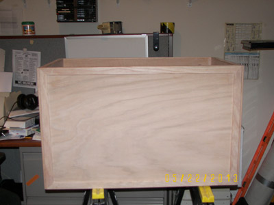For this Toy Chest project I had the panels cut at a big box home store, where they ended up not being 100 percent square. I planed, sanded, and adjusted them until the box had a square carcass within 1/32" (and yes you CAN lightly plane plywood). The carcass was glued and screwed together with reinforcing panels with nylon glides in the bottom corners held by tee nuts. After assembling and trimming all of the parts, they were screwed and glued together with three different moldings. The first was a 1/4-inch "Screen" mold, which I used to cover the edges of the Plywood where it was going to show, such as the top of the case and the edges of the lid. The second was a Countertop Edge that I use on the lid top. And the third was a 1-5/16 x 1/4 molding that I used to frame the sides and front. I purchased these at the store in a large length and then had them cut in the store to 4’ pieces so that I could carry them home on the bus since I do not drive anymore. After cutting them down with a "Plastic Miter Box" the moldings were glued, finished, and then nailed on.