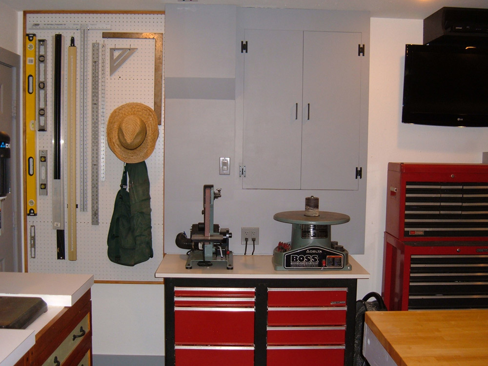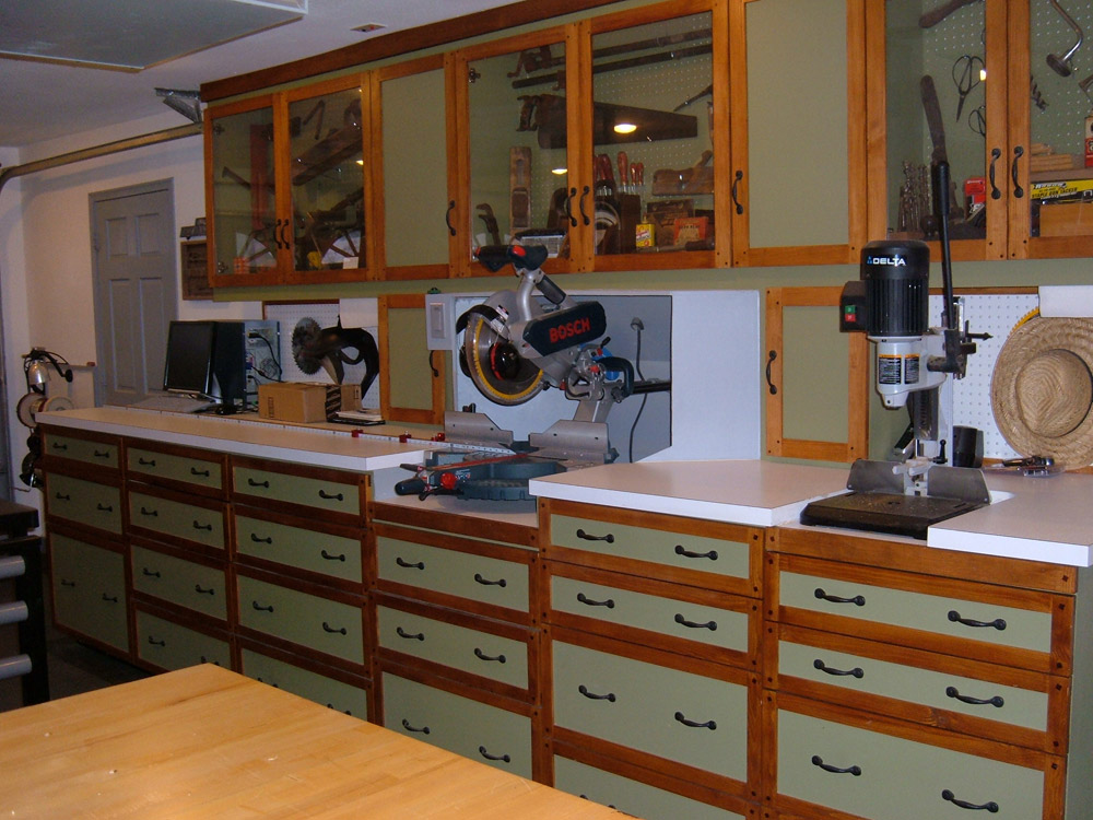 When redoing my shop I hired a contractor to do the rough-in since I was working full-time. He poured the extra concrete, tore down the interior walls, framed it all in, moved the garage doors and put them in, and added a steeper pitch gable roof in that allowed a lot of storage above the shop. I did all the finishing in the shop once it was roughed in. I am able to not have anything stored in the actual shop except for my recycling bin. Everything else in the shop is shop-oriented. Every tool is in its place, otherwise it is missing.