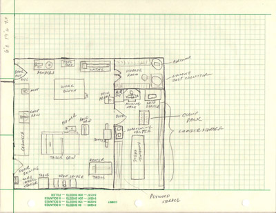 The overall dimensions of my shop are 30' wide and 26' deep. Everything in the shop is very strategically placed. I originally had a 10 foot bay area that was for my motorcycle, but when I stopped riding in 2008, I transformed that area into wood storage as well as the finishing table, clamp rack, milling machine and sand blasting cabinet. Not dust free by any stretch of the imagination, but the door between the main shop and the wood storage stays closed and the dust doesn't get stirred up in the finishing table room. Would love to have a finishing room that would allow me to do some spraying, but I just don't have the space.