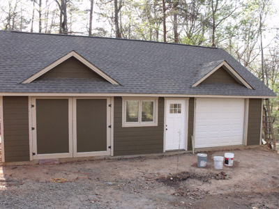is the one I used. I've used both but for my money, Hardie Board is much friendlier to install. I searched YouTube for hints on installing this by myself and got some good ideas. You should always check YouTube if you are going to do something you've never done before. I'm not going to spend time talking about how to install fiber cement siding but there are four tools I think you absolutely must have. The first is a fiber cement blade to cut with. There is a lot of dust so use a mask also. I also set up a fan to blow the dust away. Second, set up sawhorses with a 2 x 12 x 12 foot plank to do your sawing on. Third, rent a coil nailer, if you don't have one. Last, Home Depot sells a tool called a Gecko Siding Gauge. At about $60.00 I think the price is a rip-off but I have to say that it makes putting the siding up a breeze, especially if you are working by yourself.