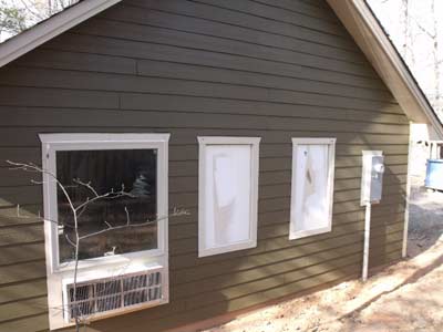 Now, let's start making this into a proper shop. The first thing is to install the AC/heat unit. This is one of those standard sized units like you find in a motel room. It runs on 220 Volts and I wanted one to take the edge off those really cold days or the really warm days. I found a used one on Craigslist for $300.00. If you shop for one be sure to get the sheetmetal sleeve that goes with it. Since they are a standard size (17 x 42), I had the wall framed from the get-go for it. I've since found that it works great for me. In about 30 minutes the shop is comfortable.