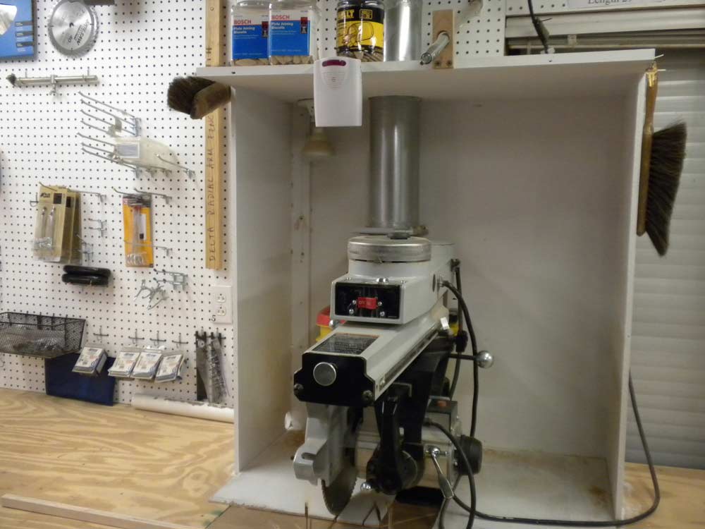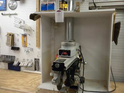 This light activates in concert with the ones over the table saw, so I am alerted to the presence of someone entering the shop about 30 seconds before they reach my location. The light gets my attention if I'm looking down at the workpiece or up at the saw rail.