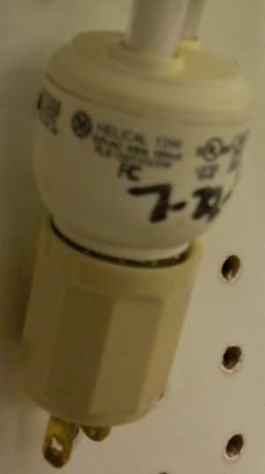 These little adaptors sell for about $3.00 each. You can screw any size standard-based bulb into it, allowing you to have a light anywhere you have an outlet. I like to put the installation date on light bulbs and batteries to know how long they last. It's easy to remember once you get into the habit.