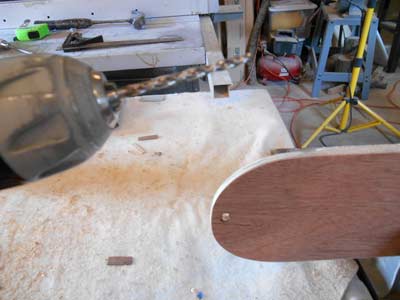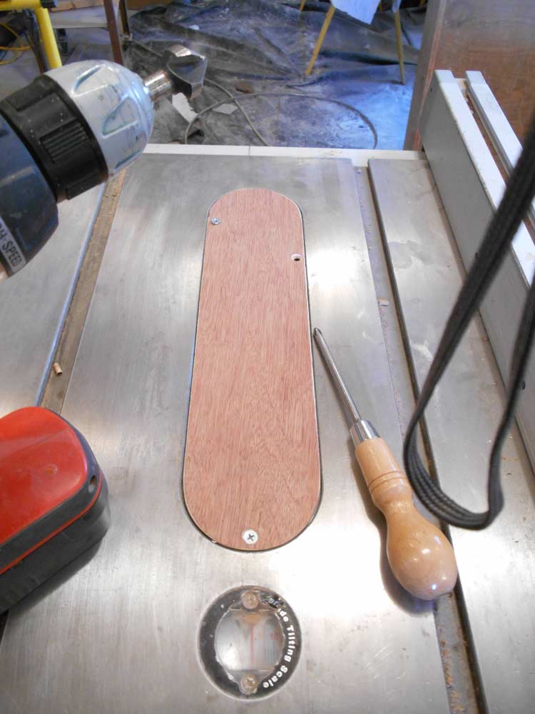 When the glue is set mark the installation screw holes and drill. I start with an undersized hole and verify they are in correct alignment. Ream and reposition the holes as necessary. Next, place the insert in the saw and put in the mounting screws to assure everything fits. After all the screws are in place, remove one screw at a time and counter sink the head just below the insert’s surface. Be gentle with the countersink as the material is rather thin and it can “blow” through easily. I don’t apply any finish on the wood. If you like a coat of urethane or lacquer followed by a coat of wax would make the wood look nice and make the insert slicker when stock is fed over it. However, this could lead to residue on stock that passes over the insert.