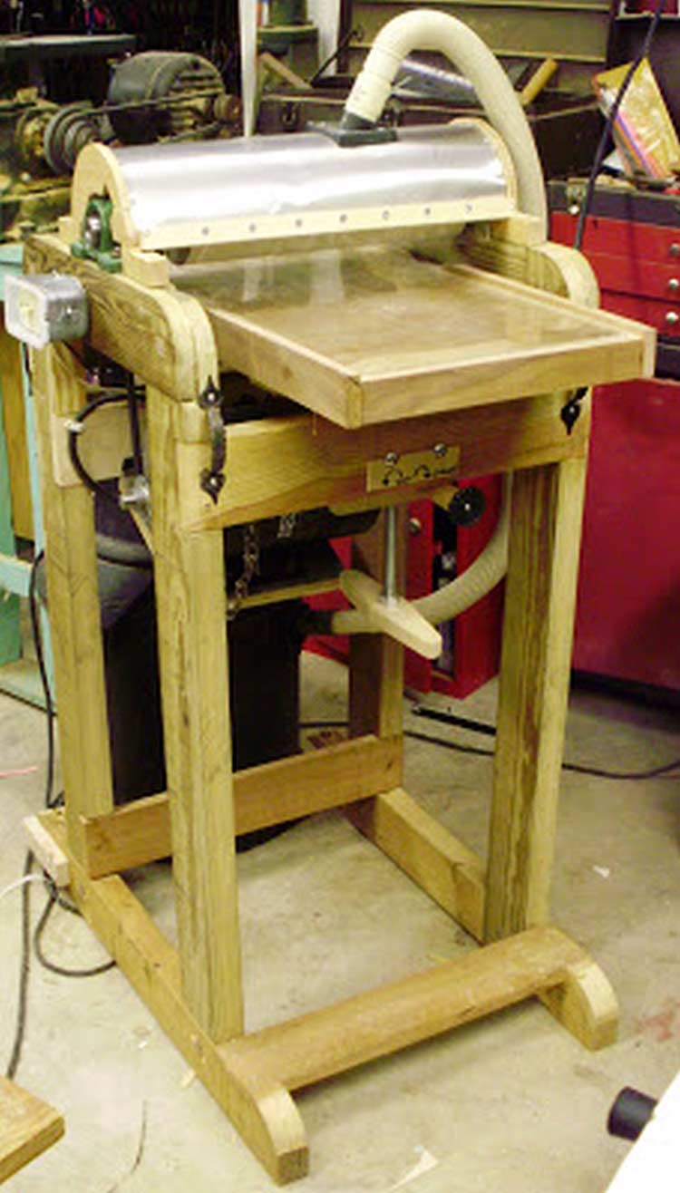 I am a miniature artist. It became painfully obvious that I was going to need a way to get really thin boards for my miniature accessories. My planer, even with the auxiliary table to raise the bed and do work, was not adequate. I knew I needed a thickness sander. I have been wanting to build one for about 25 years now, ever since I saw the plans in one of my woodworking books. The time was not right back then but it is now! I searched the internet for plans, copied a bunch, and settled on this one. The exploded view really intimidated me and the instructions were like reading Japanese at first. But I stuck with it and soon , everything made sense. Well...sorta....