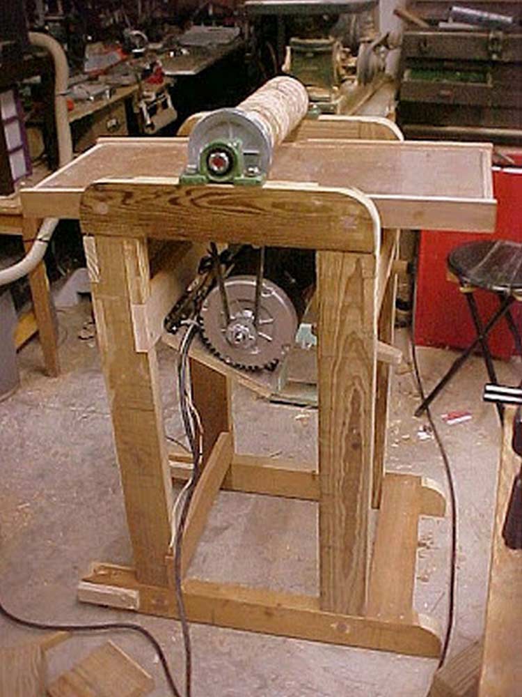 I constructed the frame according to the plans. I had to cut 18 plywood discs to make up the drum.