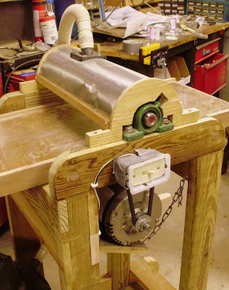 The last step was to true up the drum using the sander, pushing sandpaper through. Wrapping the drum in velcro was NOT fun! But once everything was finished I tried it out, and it was very exciting and worked great!