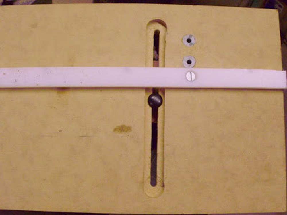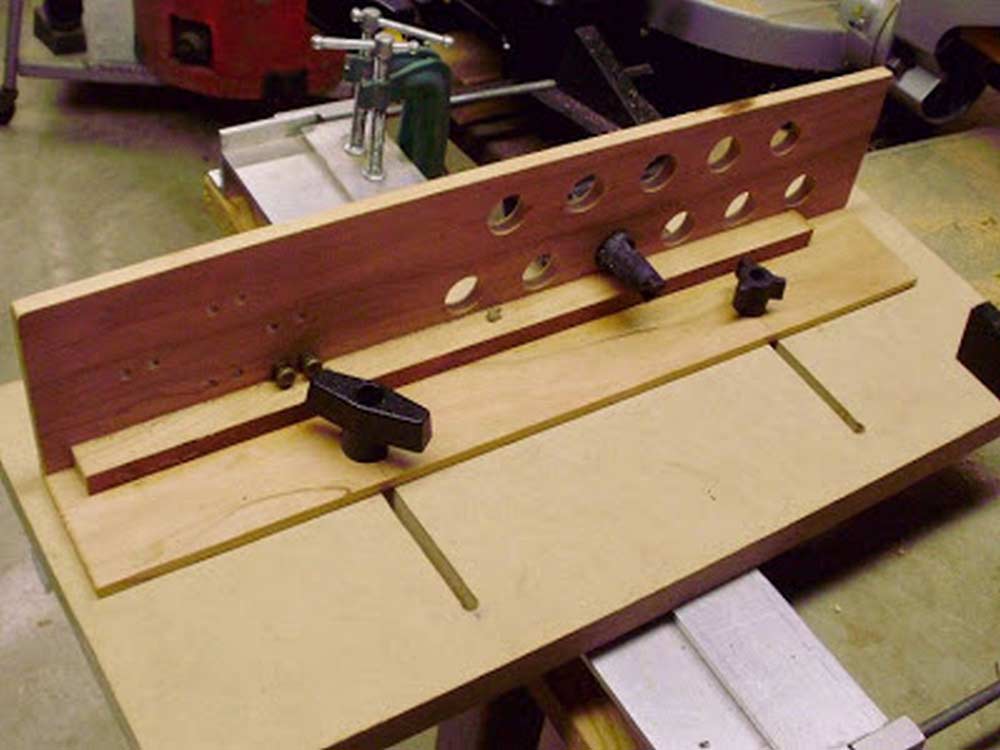 This is the back of the jig. I made two slots in the platform for the fence to ride in.