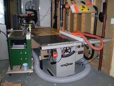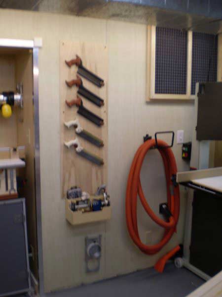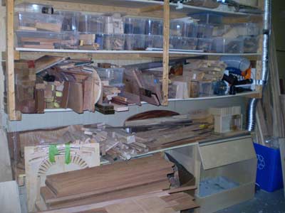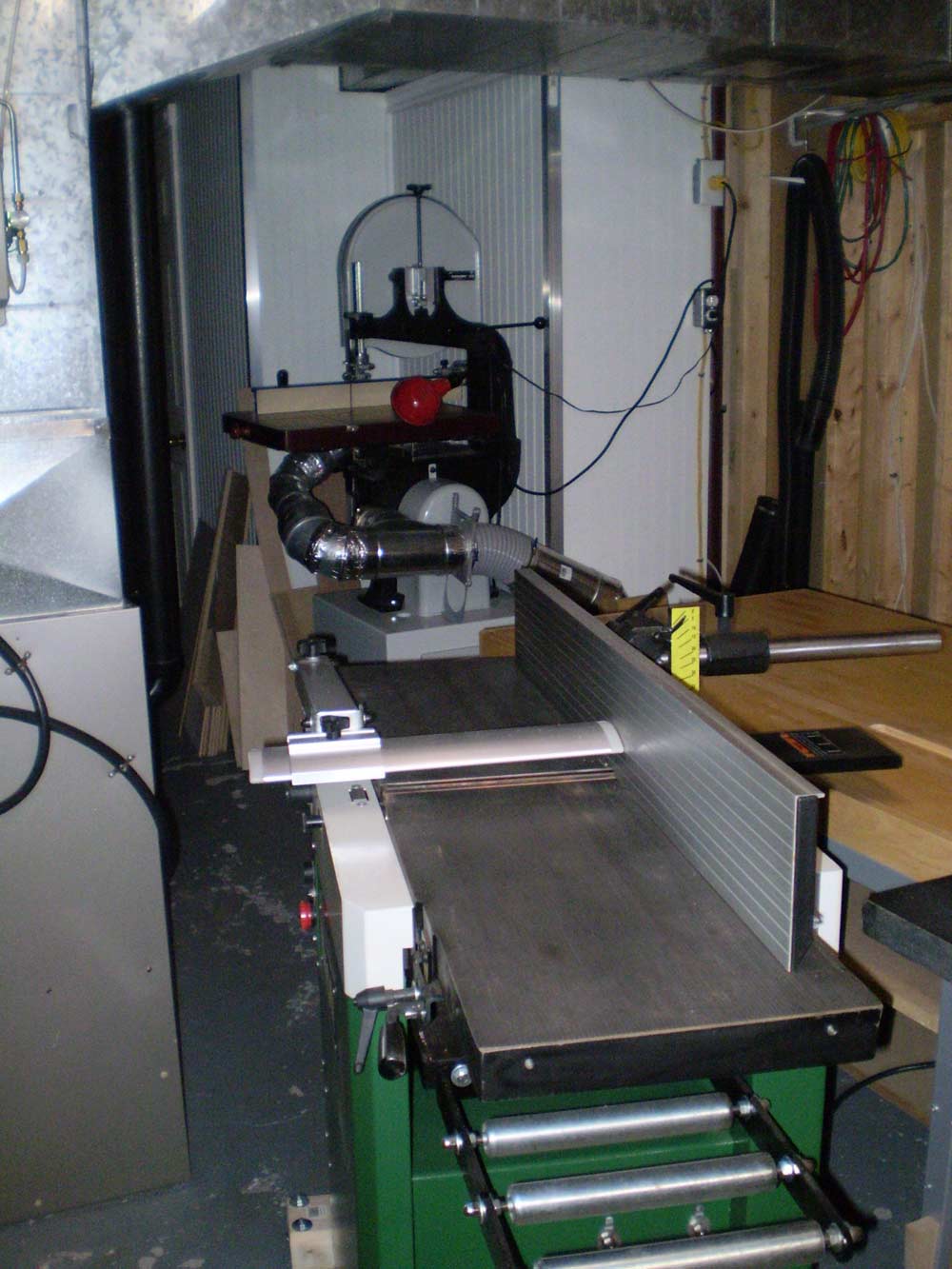 I have an "annex" area which is a general storage area/furnace room and contains my table saw, jointer/planer and a second band saw dedicated to curve cutting as well as my precision cut off storage. The jointer/planer is on wheels and is moved about as required. There also is a finishing area and the cat litter box with exterior ventilation through a computer fan and external clothes dryer type hood that it vents through. It works great, all you can smell is the stored wood.