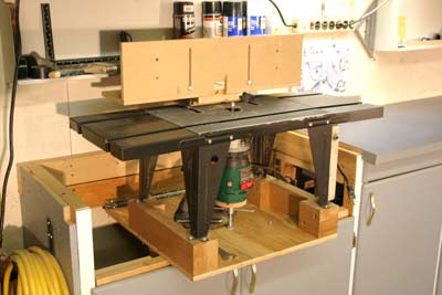 The router table takes the longest setup; the fence has to be installed. It won't fit in the stored position when installed. It takes a whole minute and a half before it's ready to go.