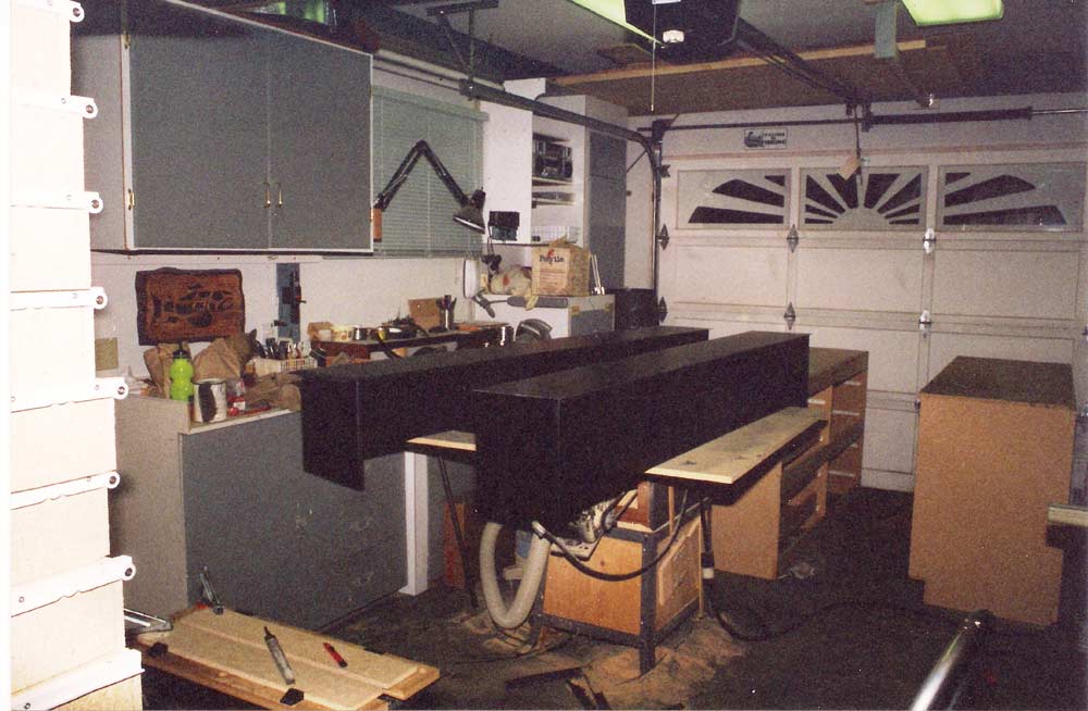 The space was a 12 foot wide by 24 foot long single car garage. I had to incorporate all my tools into a production shop as well as get the car in during the cold Canadian winter. The shop had to set up for full production with access to all of the majorpower tools in 15 minutes or less. I knew if it took longer than this setup time, I would be discouraged from even starting aproject.