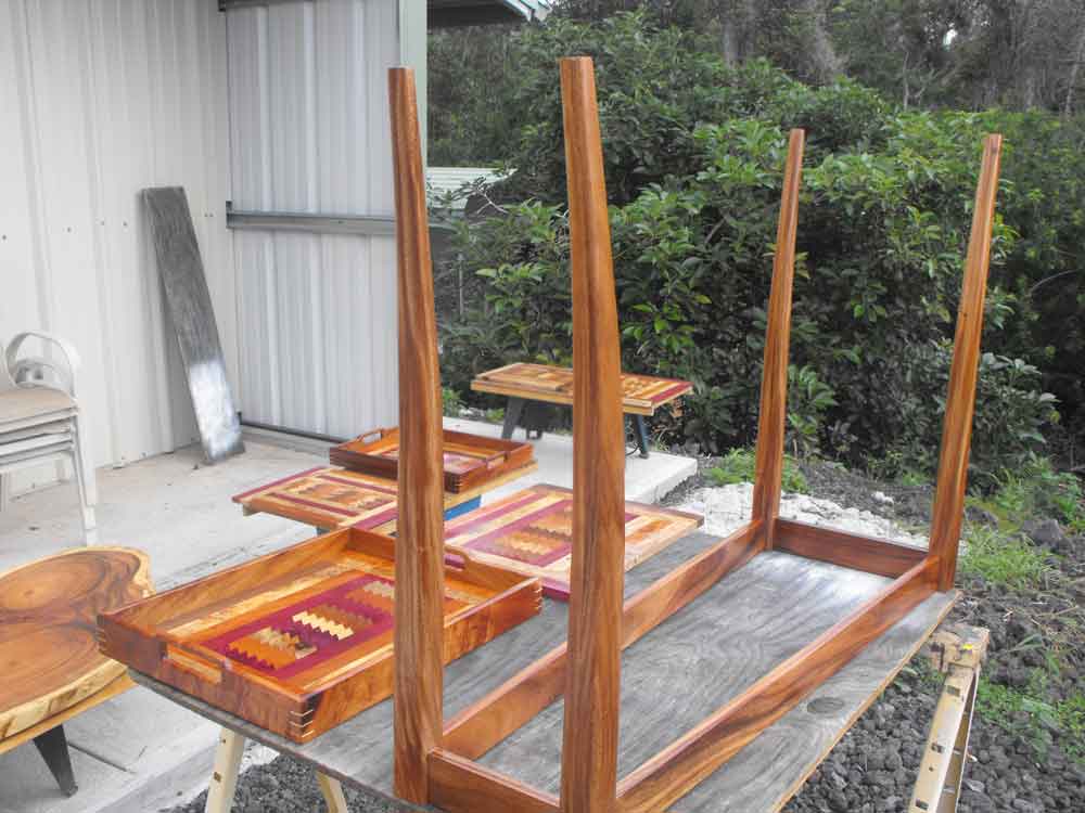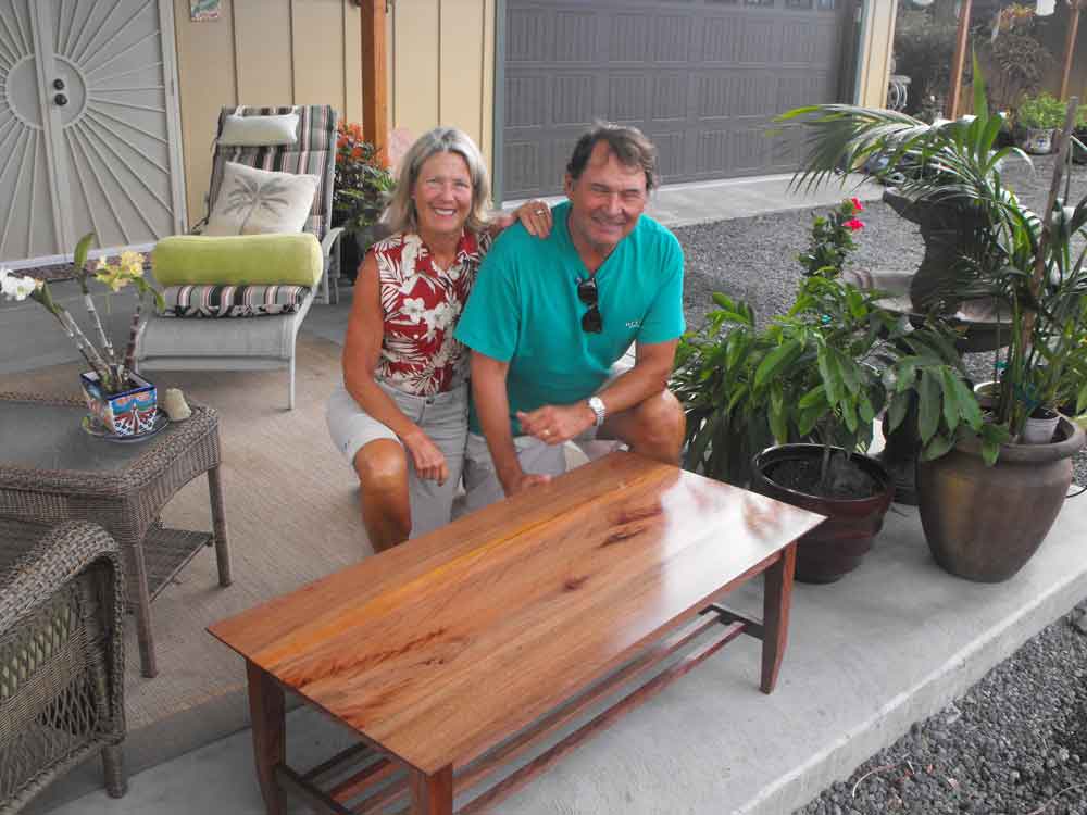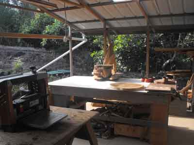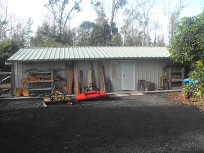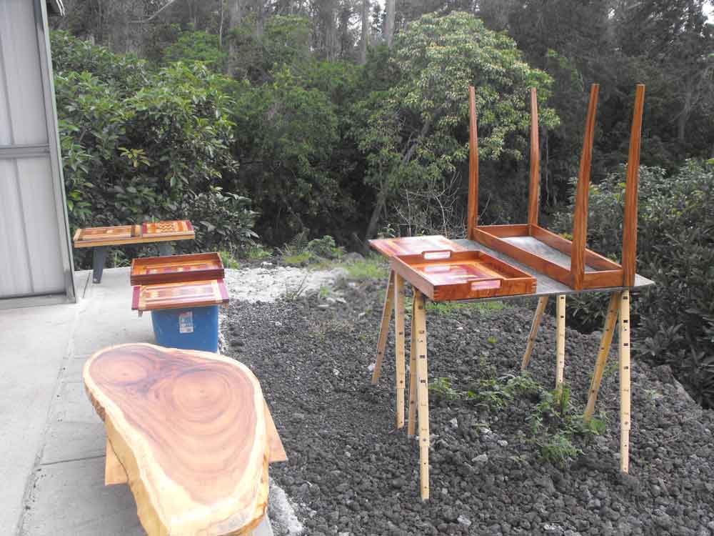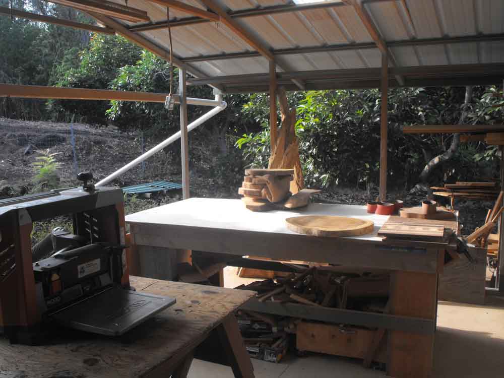 My workshop and home is approximately 20 miles from the City of Captain Cook to the north, and 15 miles from the village of Hawaii Ocean View to the south. We are located 4 miles uphill from Hawaii's last authentic fishing village named Miloli'i. Our property is next to an Ohia Lehua (tree type) forest and amongst 1100+ Avocado trees, several thousand coffee bushes, and also several thousand Macadamia Nut trees. In this area, all water for home use is captured from rain from the roof. There is no "city" water or sewer service. Many of the homes, like ours, are totally off grid and generate their own electricity and have battery storage for the electricity generated by solar panels and generators. However, there is electricity available from the local electric company. I have one tool that is 220v (a drum sander) and all the remaining tools are 110v. Our Avocados are grown for commercial sale to grocery firms, such as Don Quixjote on Oahu, Hawaii, Foodland, and Costco. There are feral pigs, feral cats, wild turkeys, quail, and pheasant in the area often amongst our groves. These are hunted and eaten by the local Hawaiian population, in addition to one of the best fishing areas offshore in the world for Ono, Mahi mahi, and Ahi. We have a panoramic view of the Pacific from our lanai facing westward which gives us breathtaking sunsets. There is a daily ocean breeze from the west and in the evening we get a colder mountain breeze (from the east) from Mauna Loa (the highest mountain on earth if measured from the base below sea level to the top). I am the local Volunteer Fire Chief and have a fire truck parked in our yard and am on call for local fires.
