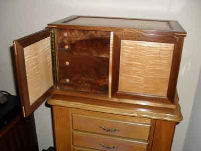 My preferred wood to work with by far is Eastern Black Walnut and many of my fancier projects were made from a walnut tree trunk that I bought many years ago. It had been stored in pieces in someone's crawl space for more than 20 years and it was full of crotch wood and intriguing grain patterns. I wish I could find a source like that again as obtaining quality black walnut in Florida is not very easy.