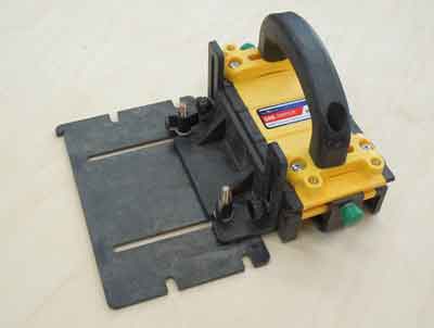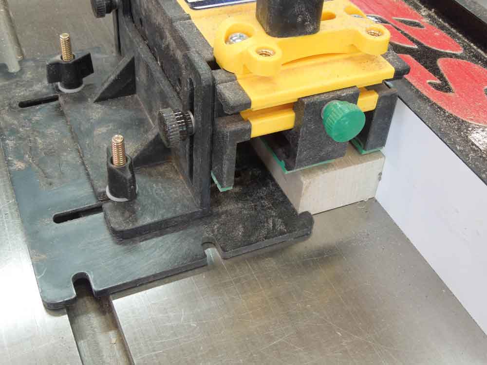 The last key element of the system is a flat plate that attaches to the bottom of the stabilizer platform and can act as a moveable feather-board.