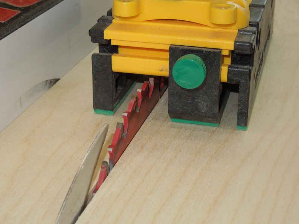 This tunnel acts like an overhead guard protecting you from the blade and moves along with your hand. This is a very nice safety feature. When I first started using the GRR-ripper system I actually thought that this was a negative feature of the system. I had to remove my overhead guard in order to use the push block. However, once I realized that the tunnel acts like its own overhead guard and with my hand on the handle I am now safer than before. A word of caution – be sure to sight down the tunnel before turning on the saw. You must make sure that the top of the saw blade is lower than the top of the tunnel and will not run into and cut the plastic. If you don't do this, then your hand is safe but the feedback when the blade touches the plastic is immediate!