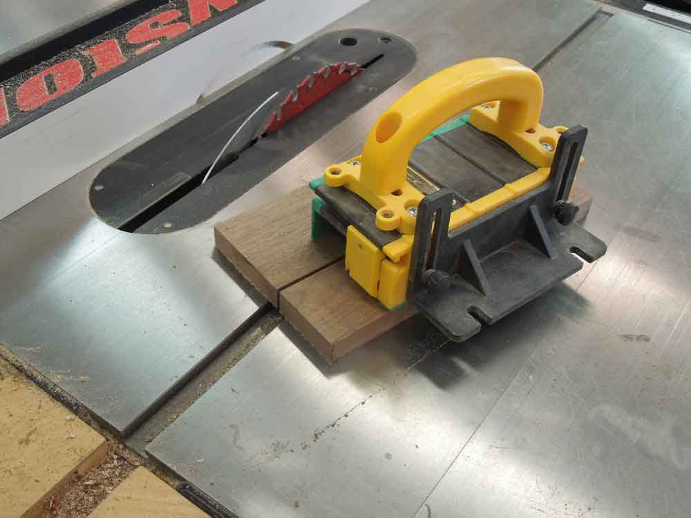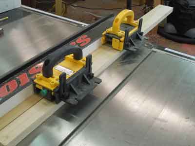For longer boards you can use two GRR-ripper push blocks and alternate your hands as the board moves past the blade. You may start out with a push block in your right hand pushing the board and then as it passes over the blade you add a second push block using your left hand. As the left hand starts to pass over the blade you reposition the push block in your right hand back onto the wood behind your left hand and keep on going. This can be repeated until you get to the end of the board.