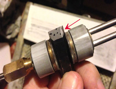 What initially caught my eye was the bevel looked like it might be slightly out of square with the chisel's body. I picked up my best square (just to be certain) and tested it. Sure enough, one corner was longer than the other. The error was probably not more than a couple degrees, which isn't much, but it could be enough to prevent the short corner from reaching all the way back into a 90-degree inside corner. Since I prefer to sharpen my chisels and irons with one of my honing guides, this error (even so slight) must be corrected in order to re-sharpen the first time. As some hand-made tools can be quite pricy, it's up to you to decide if the problem is significant enough to warrant replacement or if you'll just resolve it yourself. As my chisel's angle was off by such a small degree, I decided to resolve it myself rather than trying to contact the maker/seller to get a replacement.