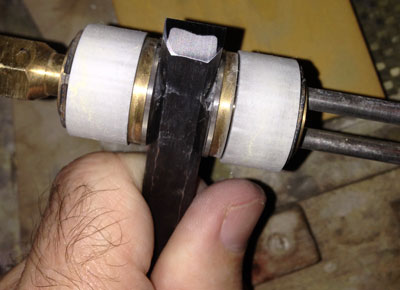 I have a couple of different types of honing guides that I use fairly regularly and I find the Kell honing guide provides the best results on this chisel. Part of what went into this decision was the way the Kell honing guide holds the tool you're sharpening. The Kell honing guide has two reference bars that run between the two wheels, which have flat and square inside surfaces. I've had great results honing and maintaining a square-shaped cutting edge using this guide, as long as I did my part to verify the tool was in contact with both the bars and the wheels. The only time I've had a problem is when I didn't notice that the tool wasn't resting on the bars, which can end up with results not too dissimilar from the way my chisel arrived out of square. My other honing guides were less absolute, especially for narrow chisels that you intend to hone totally square and can require more effort in the setup phase to know for sure its right.