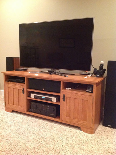 The entertainment center is made of rift cut White Oak: